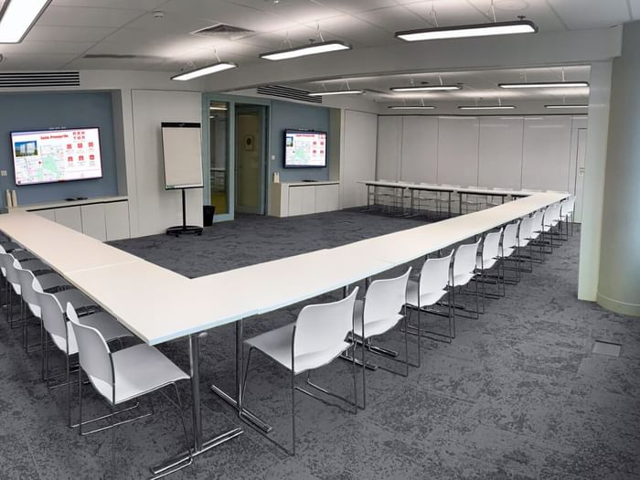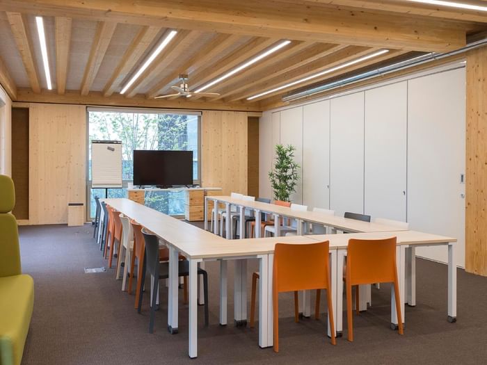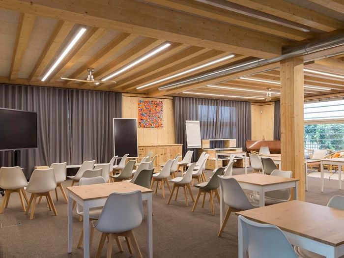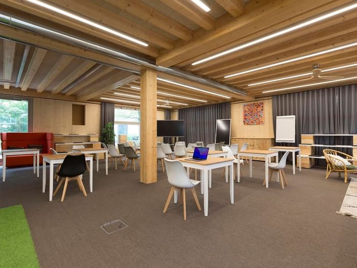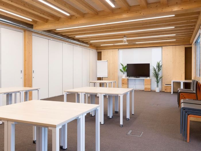 - Modulaire/aanpasbare zaal afhankelijk van het aantal deelnemers