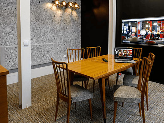 | klassieke vergaderruimte | 2 tot 20 personen | wifi, schermen, whiteboard | teamvergaderingen, interviews |