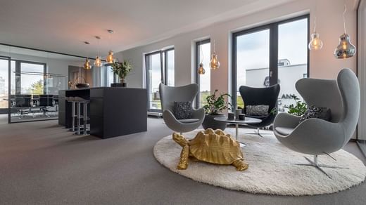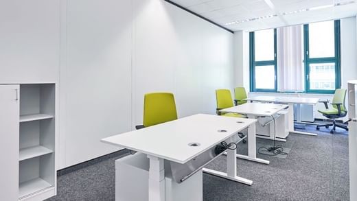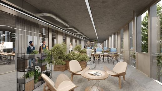 O centro oferece espaços de trabalho flexíveis, áreas de coworking inspiradoras, um terraço no último piso, uma cantina no local e uma creche integrada - ideal para equipas de todas as dimensões.