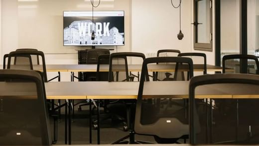 Para além de ter acesso WI-FI, da possibilidade de reservar salas de reunião e do acesso a áreas comuns, HQ Rheinstrasse tem ou oferece: