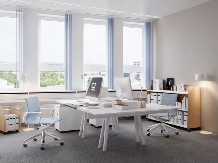 - Preço por mês de um posto de trabalho em escritório privado: 139 € sem taxas/mês