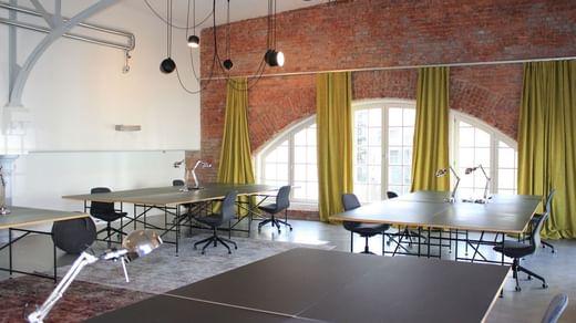 O espaço de escritório flexível e o espaço de coworking inundado de luz oferecem às empresas e às start-ups um ambiente de trabalho excecional que promove a criatividade, a comunicação e a colaboração. Para além das espaçosas áreas de lounge, existem várias salas de reuniões e conferências no 1º andar.
