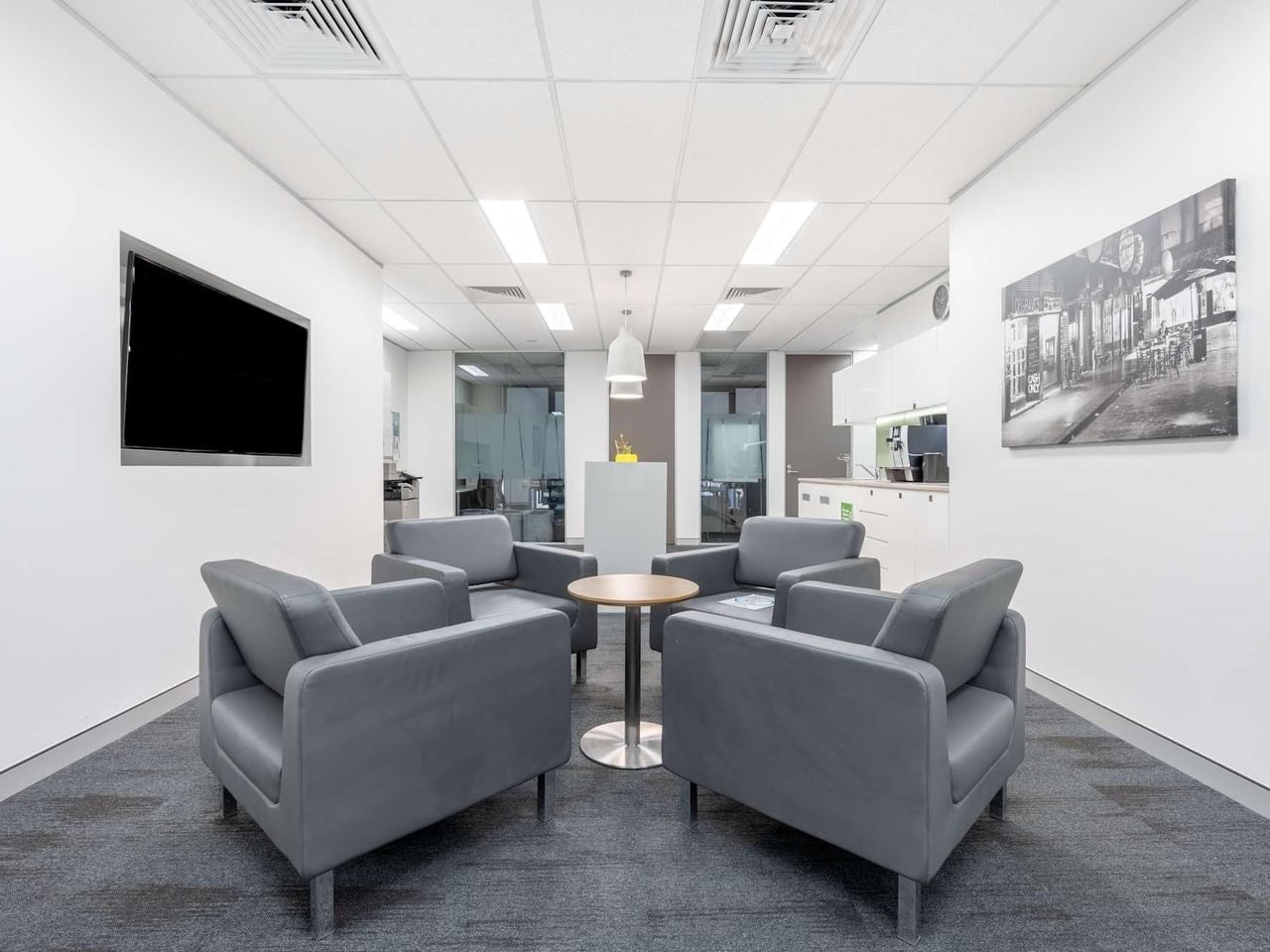 Maximize a produtividade no nosso luminoso escritório 22-28 Edgeworth David Avenue, inundado de luz natural das janelas do chão ao teto e mobilado com uma área de estar relaxante.