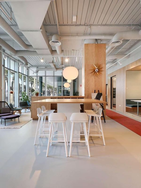 Seja qual for a sua forma de trabalhar, o nosso espaço de escritórios luminoso foi concebido para o inspirar a criar num ambiente vibrante e flexível.