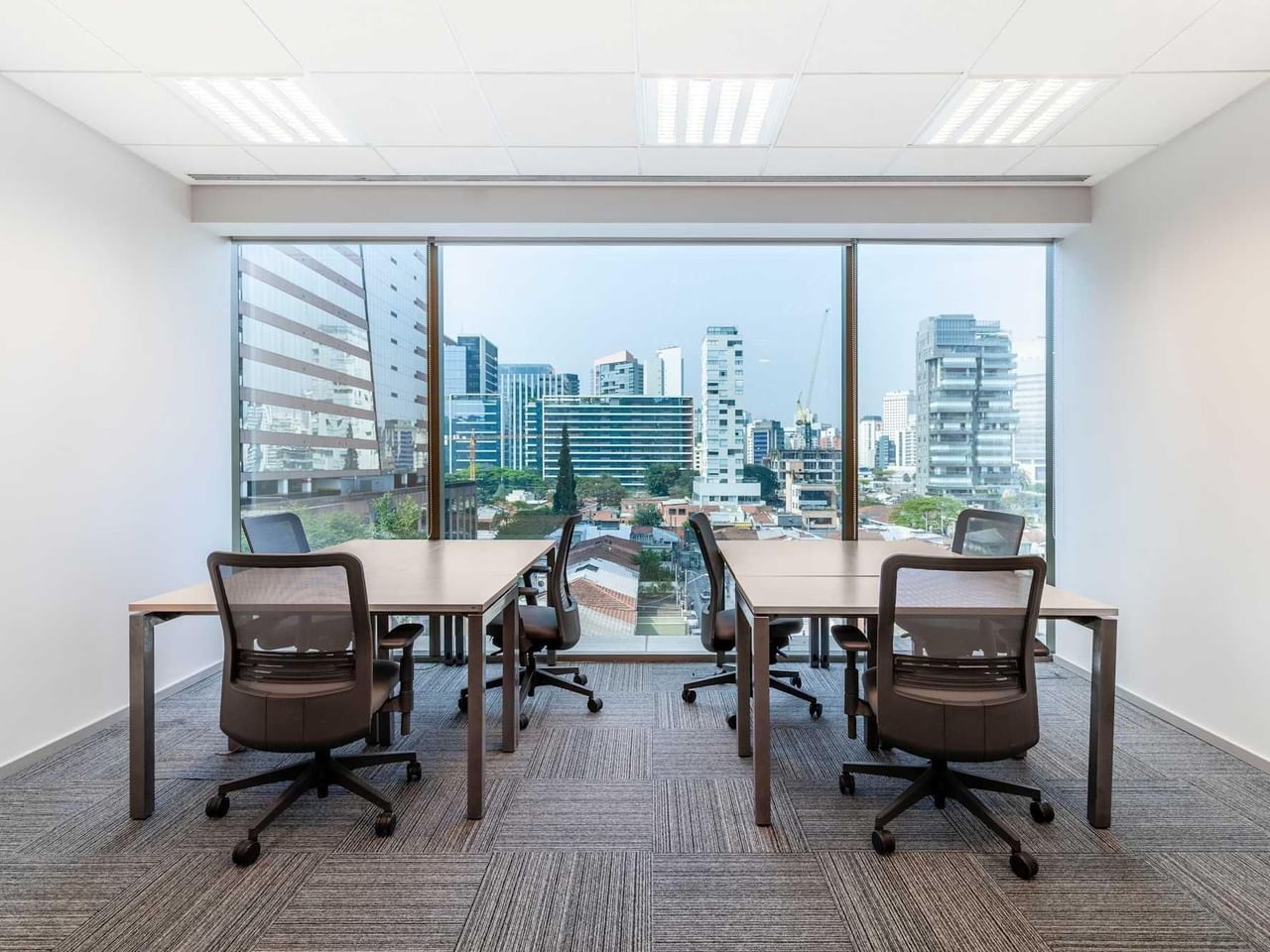 Concentre-se no seu trabalho no nosso espaço de escritório JK 1455, moderno e luminoso, com janelas do chão ao teto.