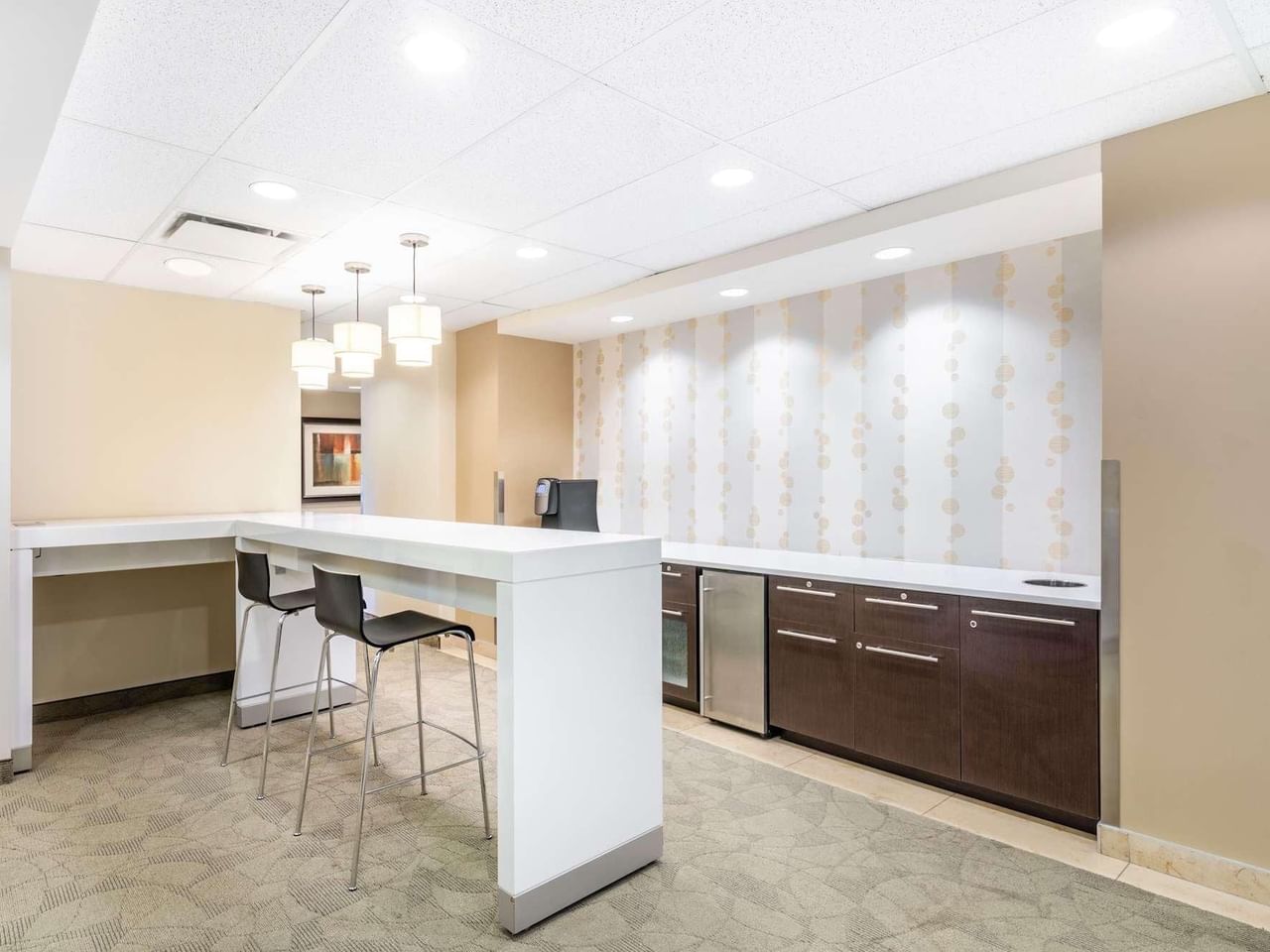 Desfrute de um tratamento de passadeira vermelha nos espaços de trabalho igualmente grandiosos e totalmente equipados, que possuem as mais recentes instalações de videoconferência e um café-bar no local.