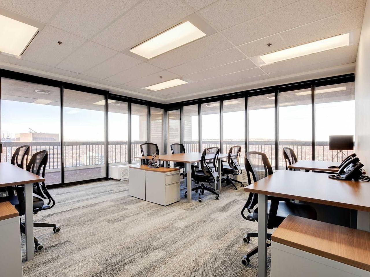 Desfrute de vistas deslumbrantes de Calgary a partir da sua secretária no nosso espaço de escritórios 639 5 Avenue South West.