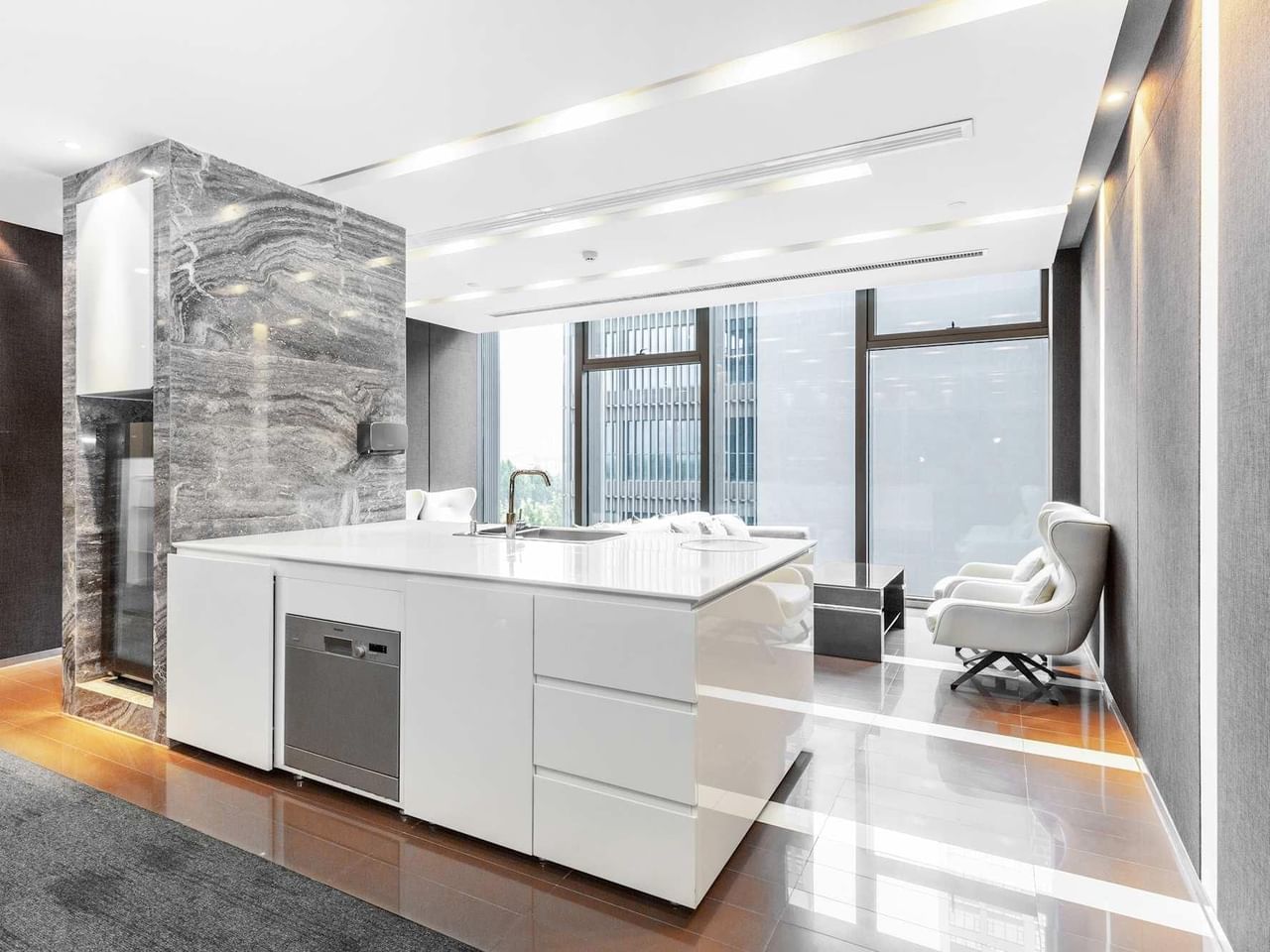 Cause uma primeira impressão arrojada nesta impressionante torre de negócios angular, que alberga um espaço de trabalho contemporâneo e cheio de luz.