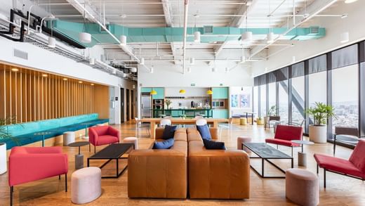 As áreas de lounge cheias de luz são os locais perfeitos para colaborar, enquanto os elegantes escritórios privados proporcionam ambientes concentrados e confortáveis para cumprir o próximo grande prazo.