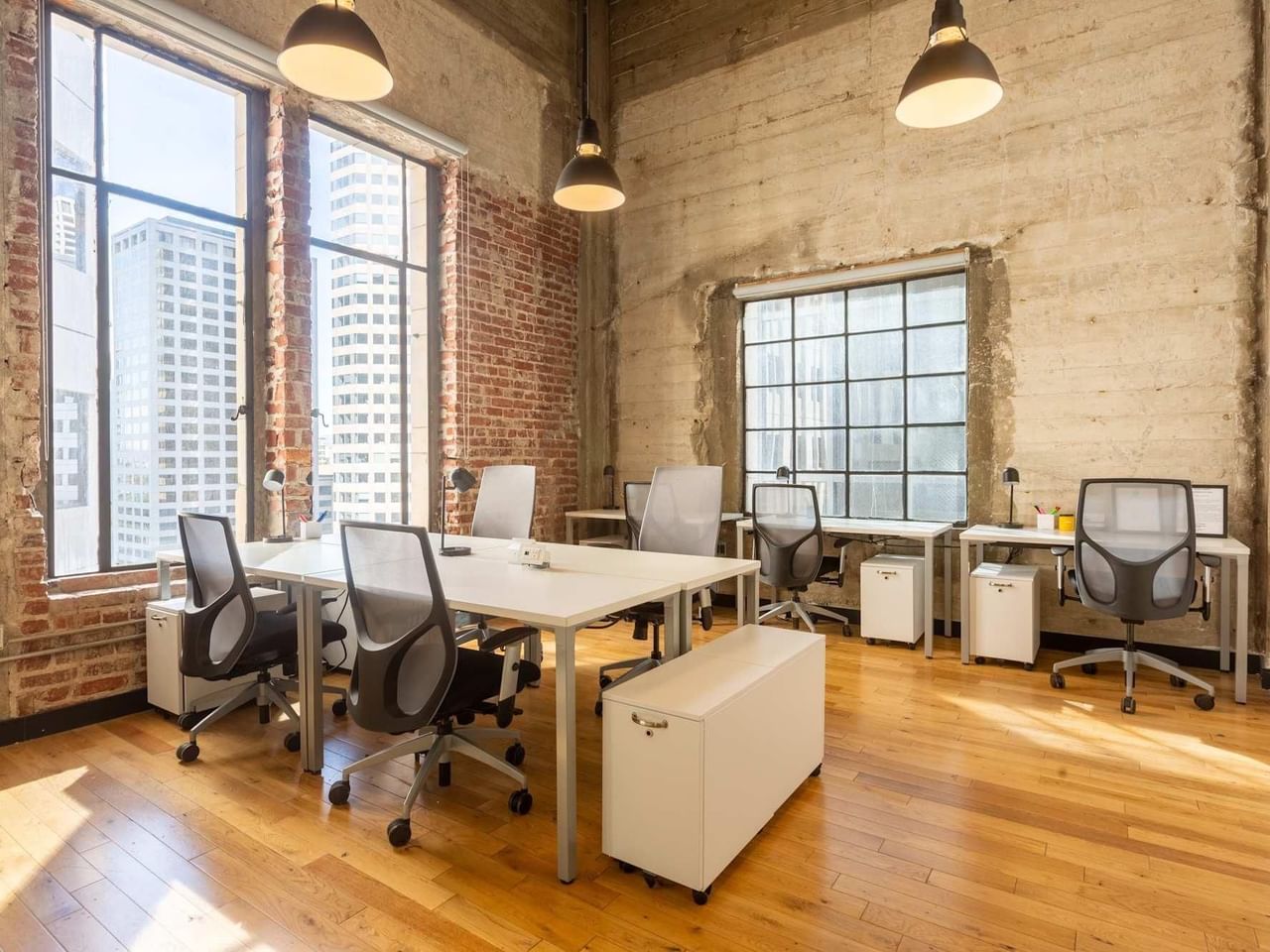 Desfrute de modernas instalações de coworking e de excelentes vistas sobre a baixa de LA, com cinco pisos de espaço de escritório flexível à sua escolha.