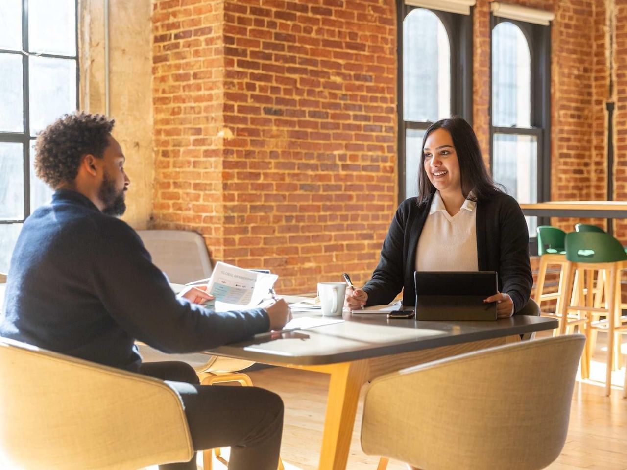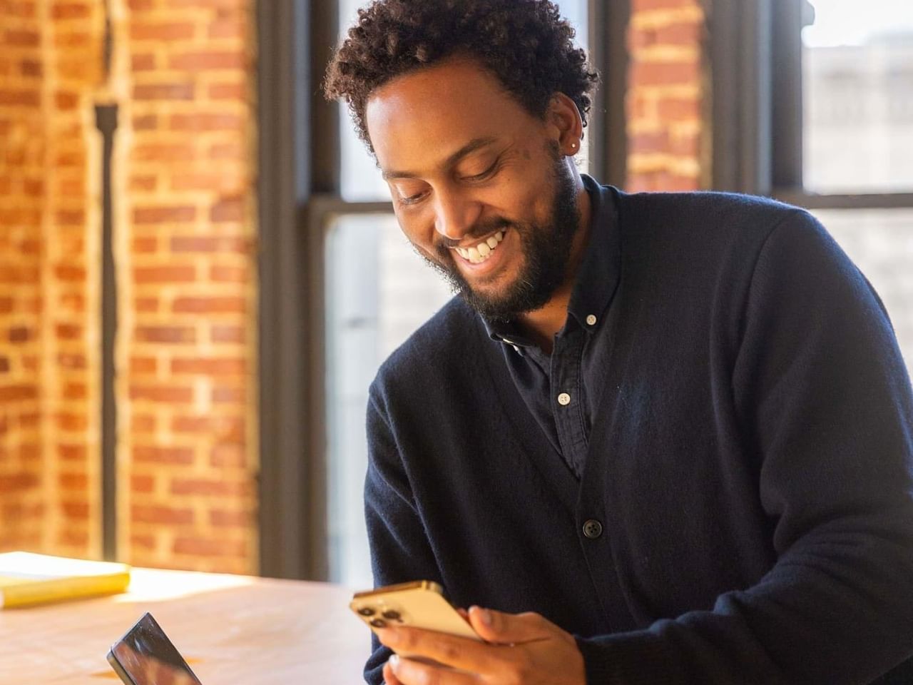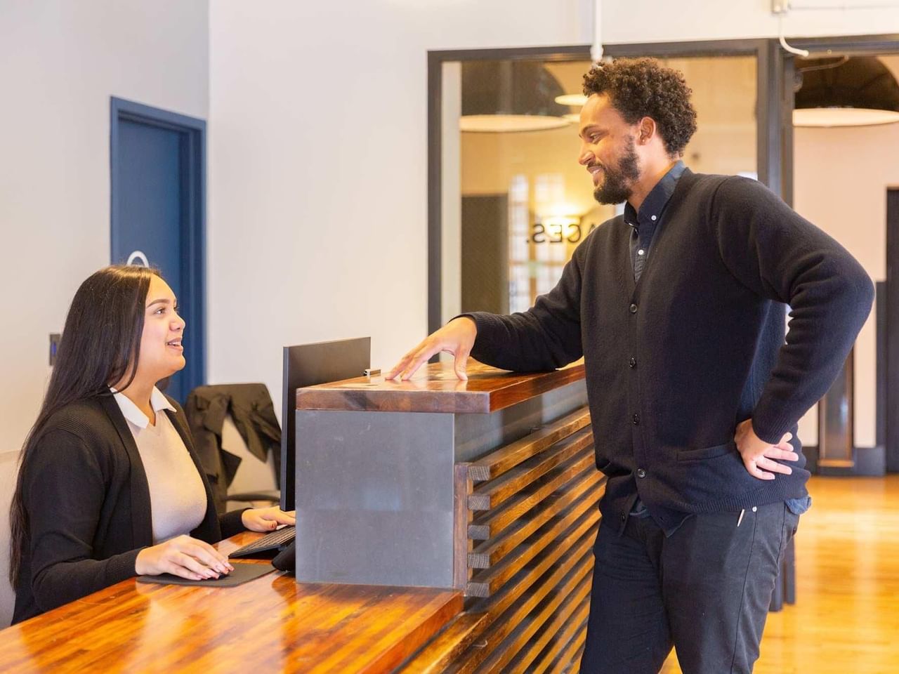 Trabalhe de forma colaborativa nas vibrantes áreas em plano aberto ou dirija-se a uma das salas de reuniões designadas.