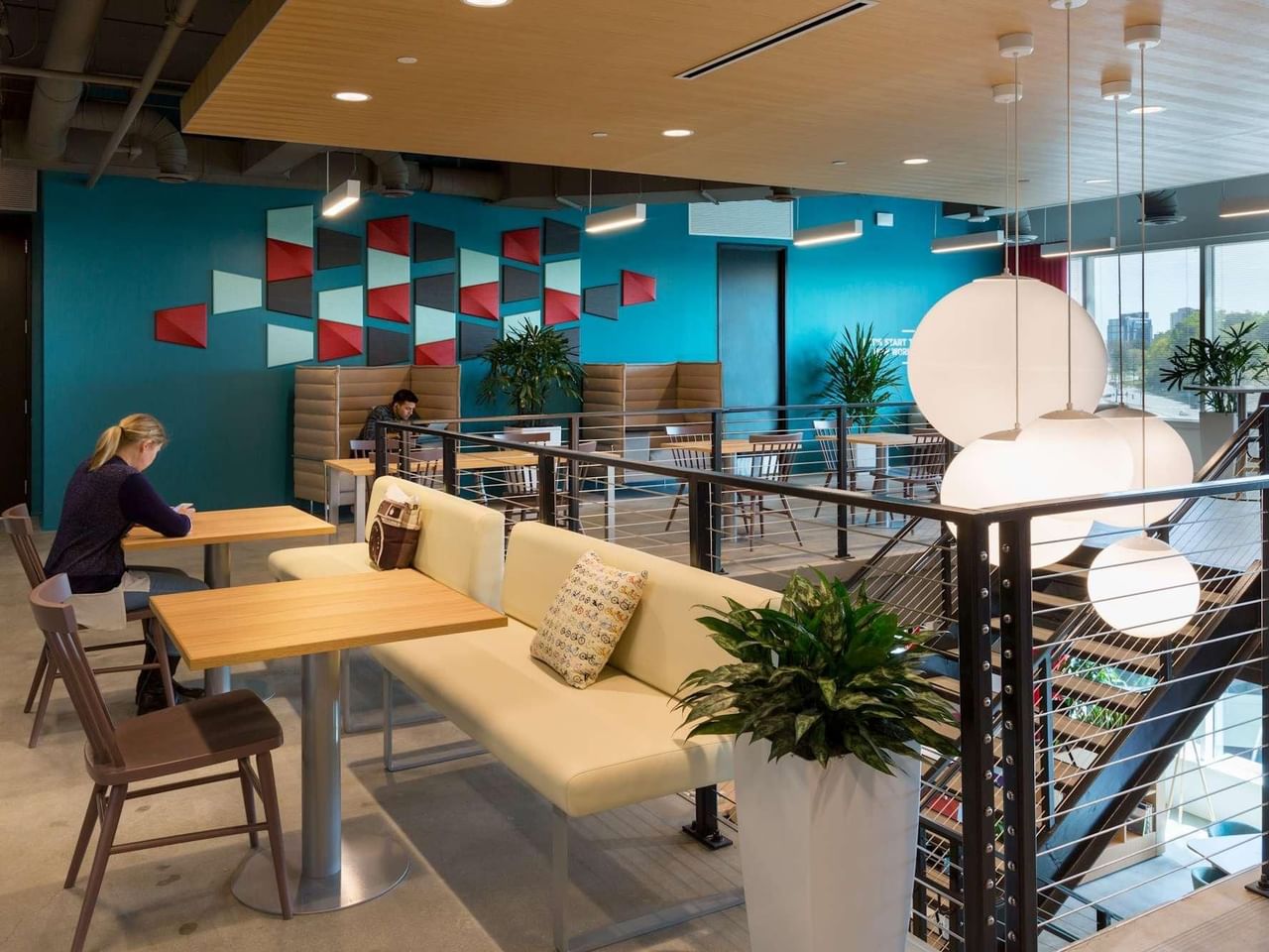 Este campus premiado apresenta vistas deslumbrantes e um cenário à beira do lago com um design elegante, perfeito para refletir sobre o seu dia ou colaborar com os colegas.