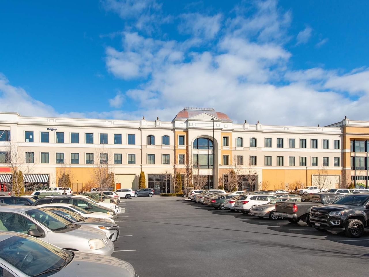 A bela arquitetura de estilo europeu do Village at Meridian é uma visão inspiradora para começar o dia de trabalho.
