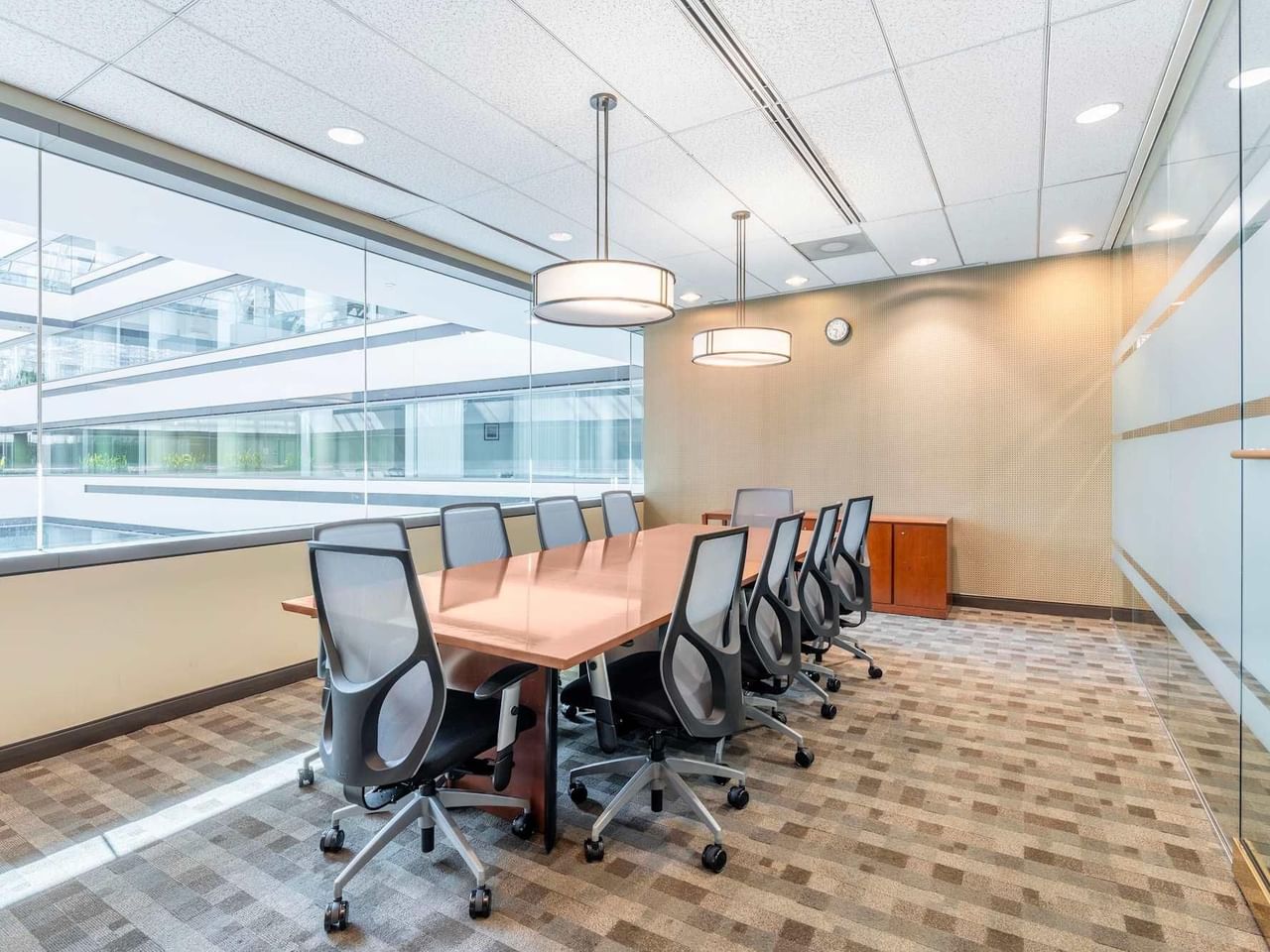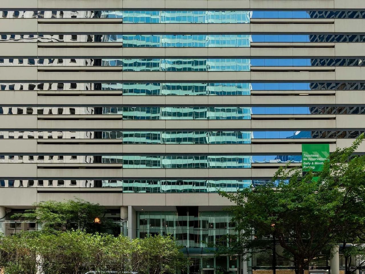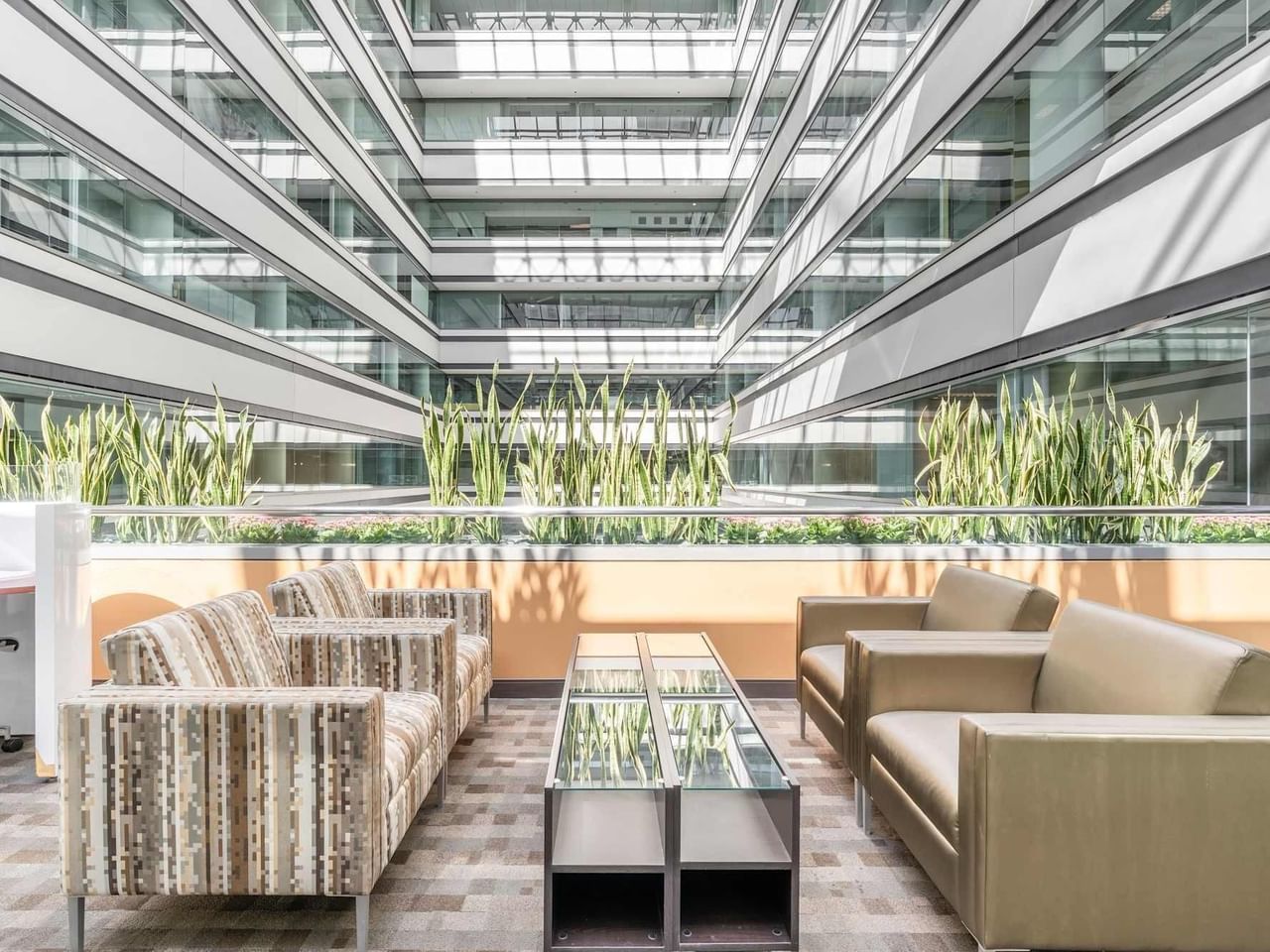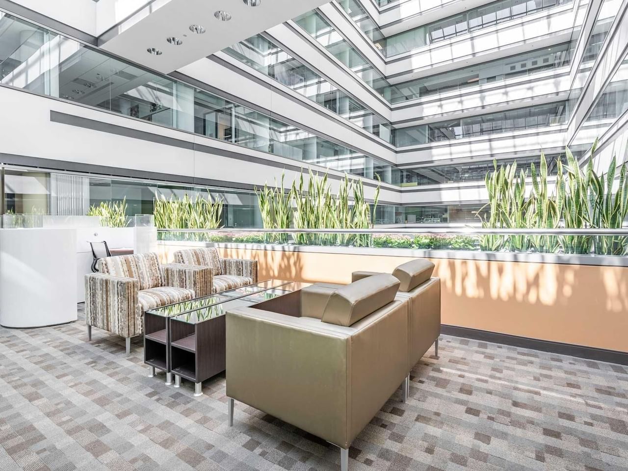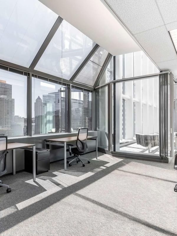 O centro dispõe de uma série de impressionantes escritórios de esquina e oferece vistas deslumbrantes sobre o horizonte da cidade.