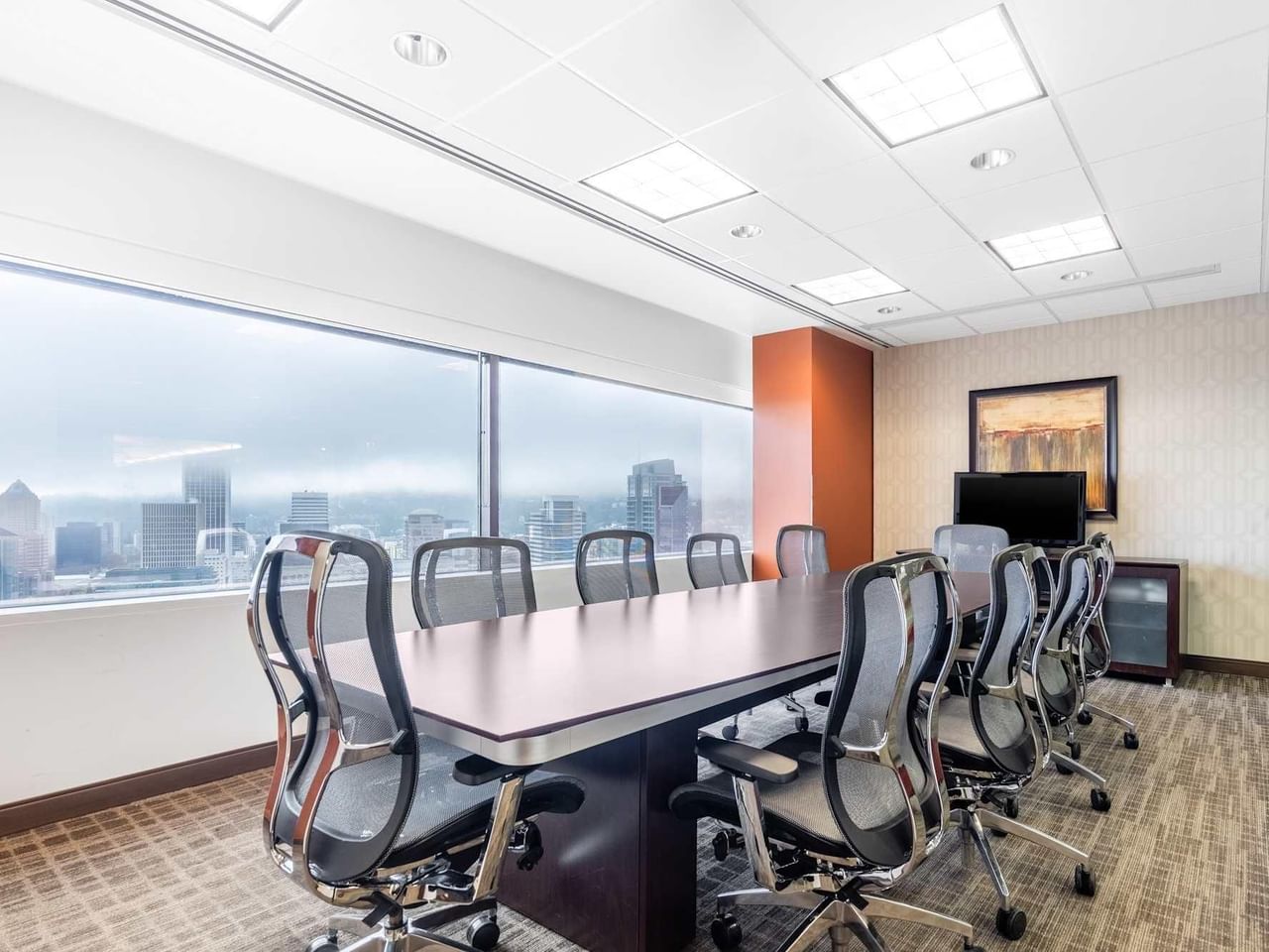 Sinta-se inspirado pelas vistas dos arranha-céus de Portland, das montanhas cobertas de neve e das pontes históricas do rio Willamette a partir da nossa localização premiada de 43 andares, a US Bancorp Tower.