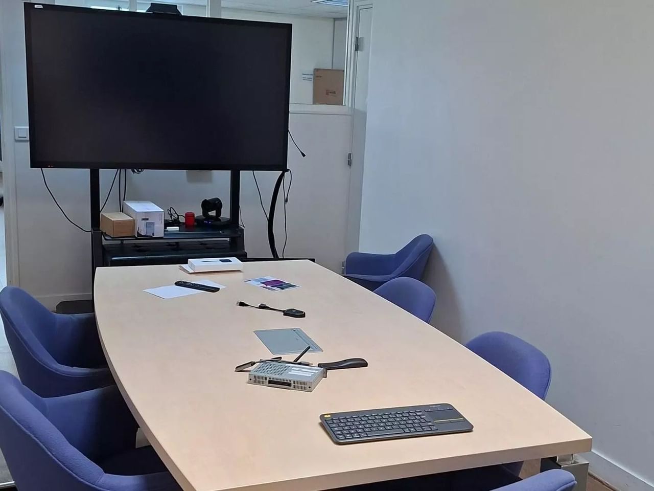 Uma sala de reuniões privada pode acolher até 8 pessoas para discussões de equipa, reuniões com clientes ou videoconferências.