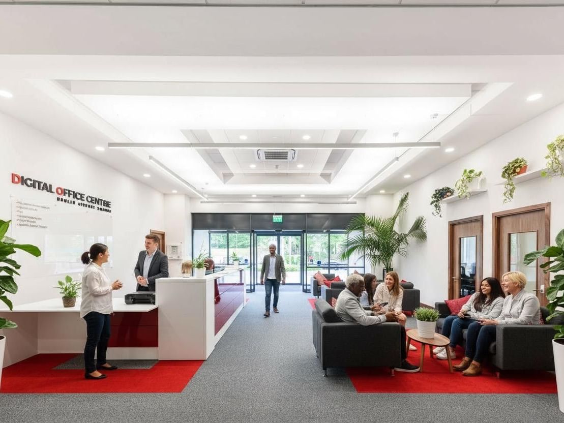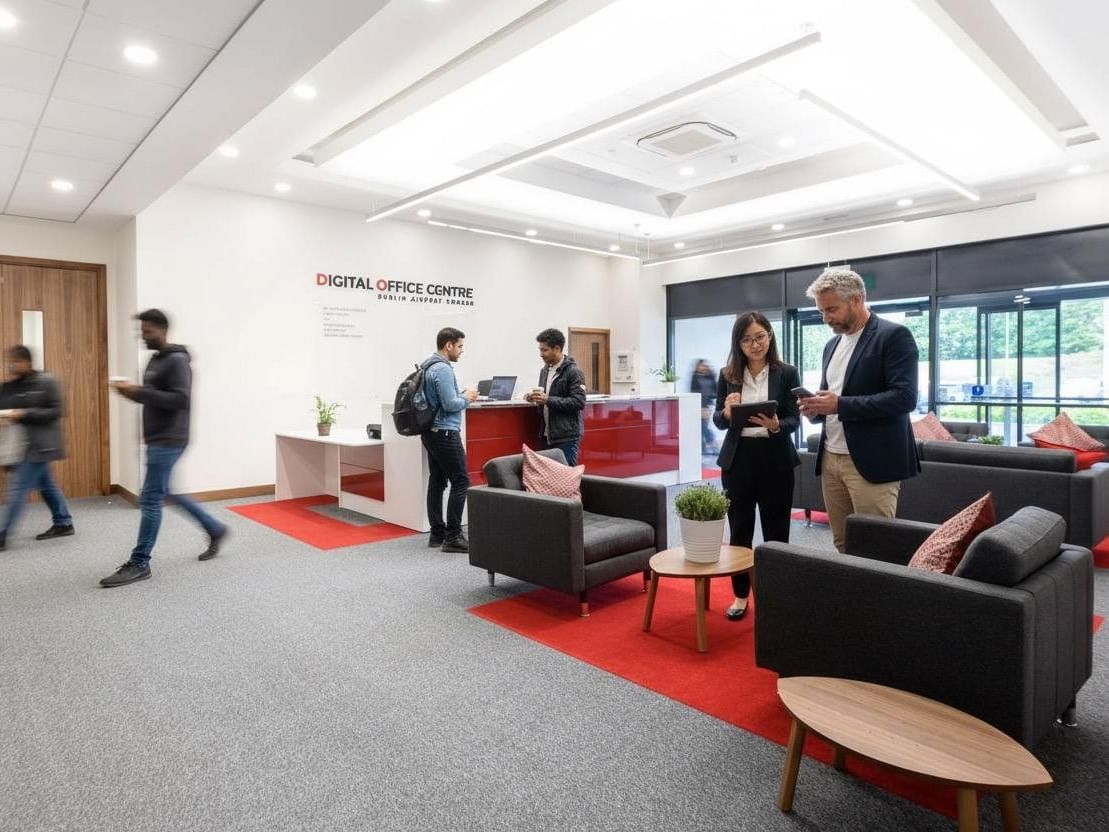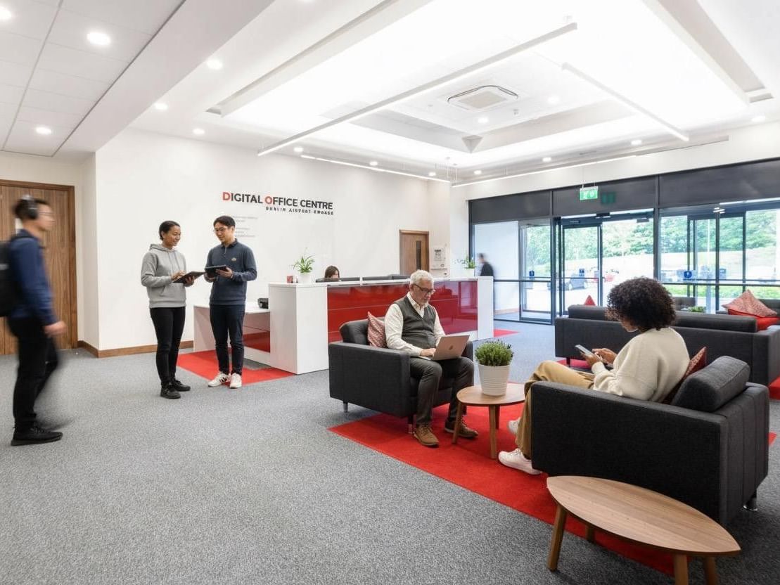 O Digital Office Centre Dublin Airport oferece espaços de trabalho dinâmicos e flexíveis para clientes que pretendam trabalhar num ambiente de trabalho partilhado.