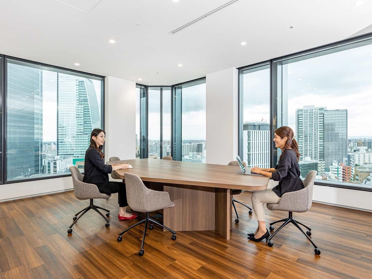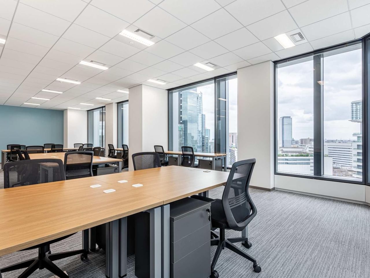 O nosso impressionante espaço de trabalho no edifício Dai Nagoya deslumbra com vistas deslumbrantes sobre o horizonte da cidade a partir de vastas janelas do chão ao teto.
