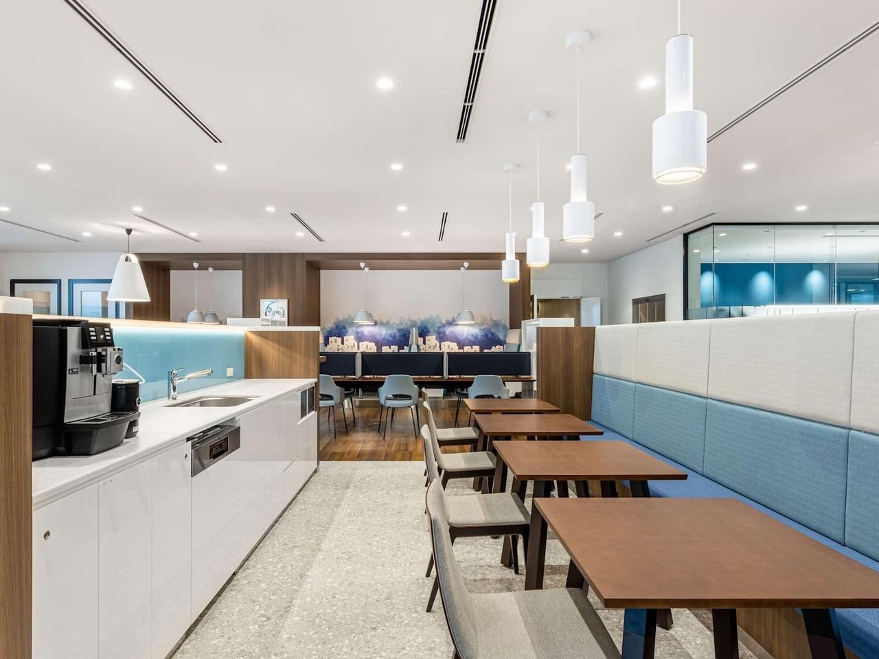 Produza o seu melhor trabalho em espaços comuns espaçosos e decorados com bom gosto, perfeitos para a colaboração.