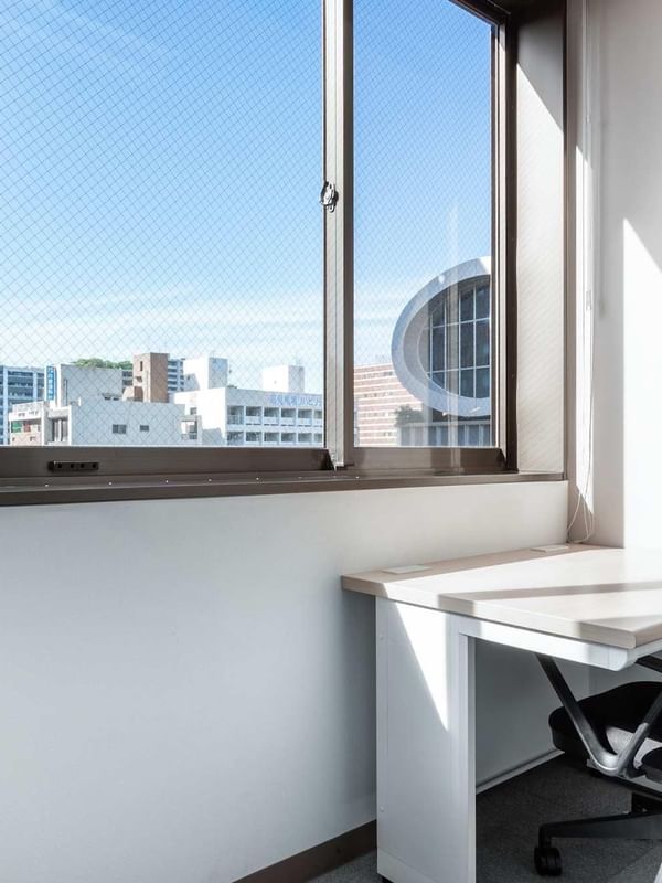 Saia na estação de Kagoshima-Chuo e dirija-se ao nosso espaço de trabalho moderno e elegante, onde as grandes janelas oferecem muita luz solar e vistas inspiradoras sobre o horizonte da cidade e Sakurajima.