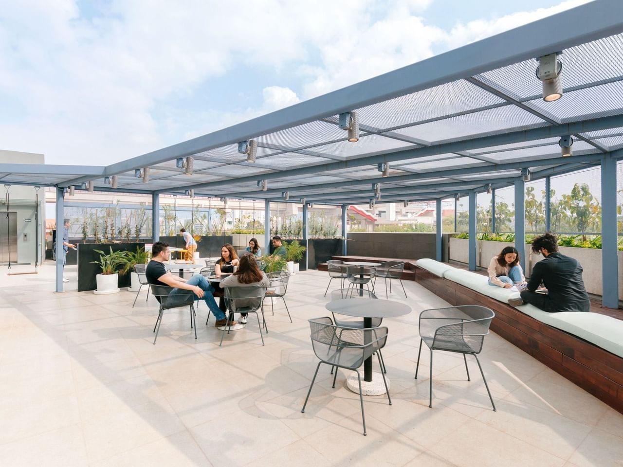 Para além das nossas comodidades de marca, como o serviço de receção, os escritórios privados e as salas de conferências exclusivas, uma convidativa área exterior proporciona o espaço perfeito para se refrescar enquanto se assegura que se mantém ligado.