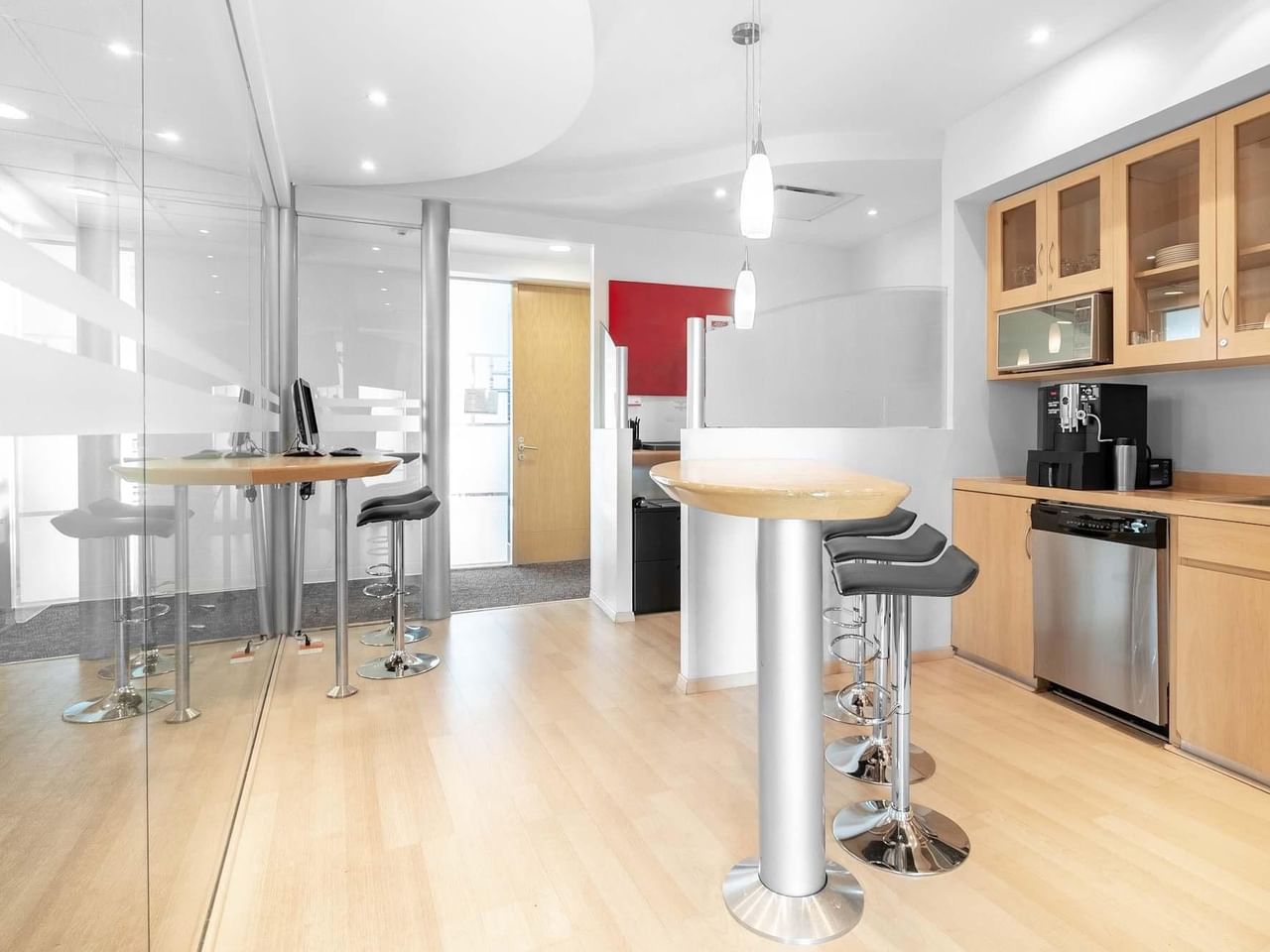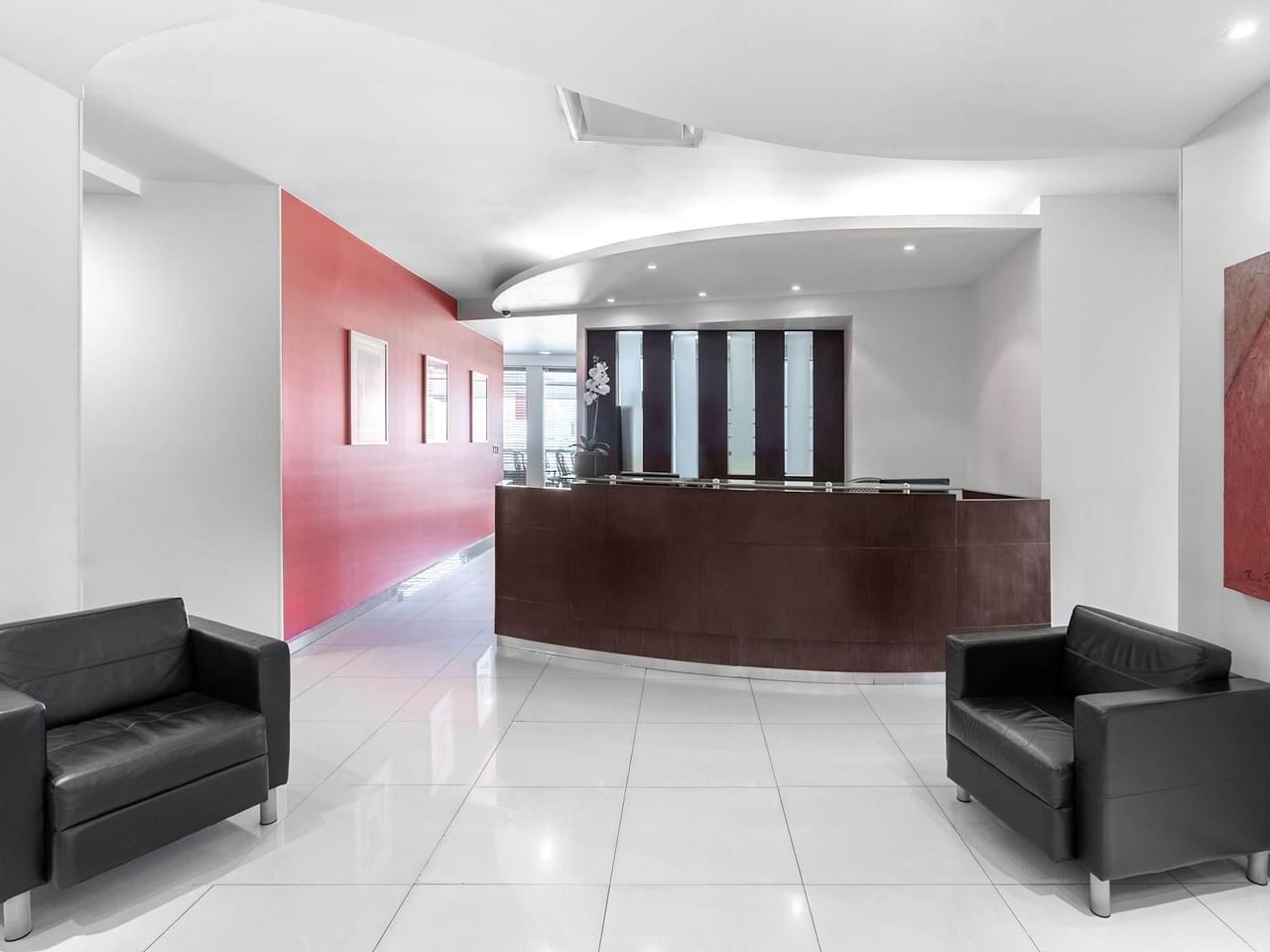 Entre pelo impressionante pórtico do edifício, trabalhe de forma produtiva em espaços de escritório luminosos e receba os clientes na elegante área de receção.