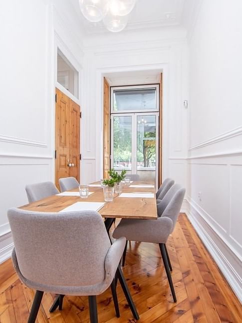 Combinando a decoração moderna com a arquitetura clássica do edifício, este é o local para trabalhar no centro de negócios da cidade.
