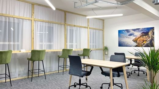 Escolha como e onde trabalhar, com opções que incluem espaços de coworking em plano aberto e salas privadas, e desfrute de mobiliário confortável, Internet rápida e apoio no local para ajudar o dia a dia a correr sem problemas.