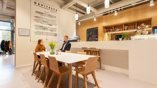 Está à procura de um espaço para pôr a conversa em dia com os colegas? Sente-se nos confortáveis espaços de descanso e trabalhe utilizando o WiFi de nível empresarial.