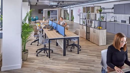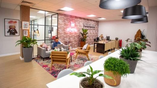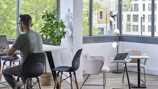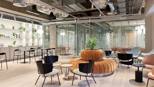 Organize uma reunião no acolhedor lounge ou use uma secretária no espaço de coworking contemporâneo.