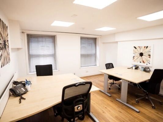 - Preço por mês de um posto de trabalho em escritório privado: 85 £ GBP sem taxas/mês
