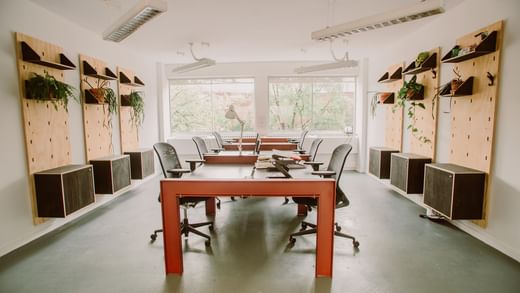 Uma escolha de ambientes de trabalho para se adaptar ao seu estilo de vida, incluindo escritórios privados, espaços de co-working, secretárias fixas e uma variedade de estúdios. Existe também uma sala de reuniões e áreas de descanso.