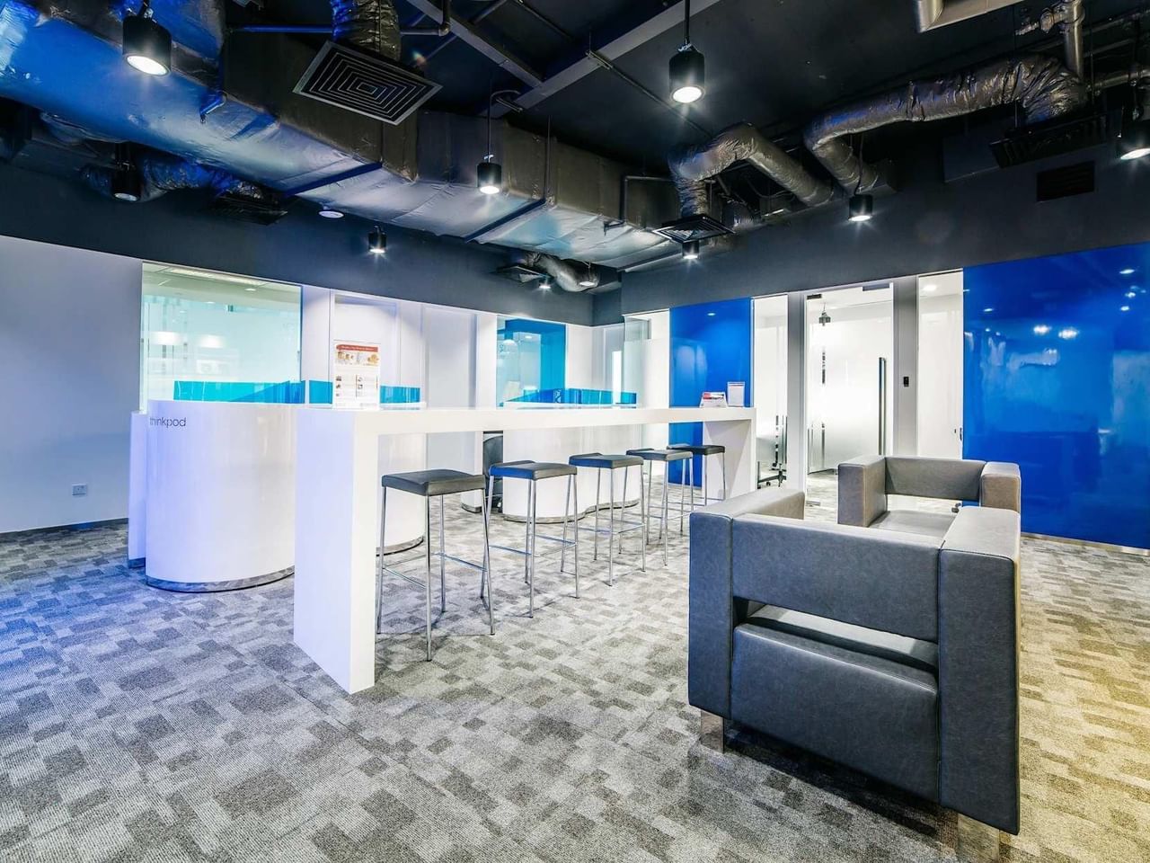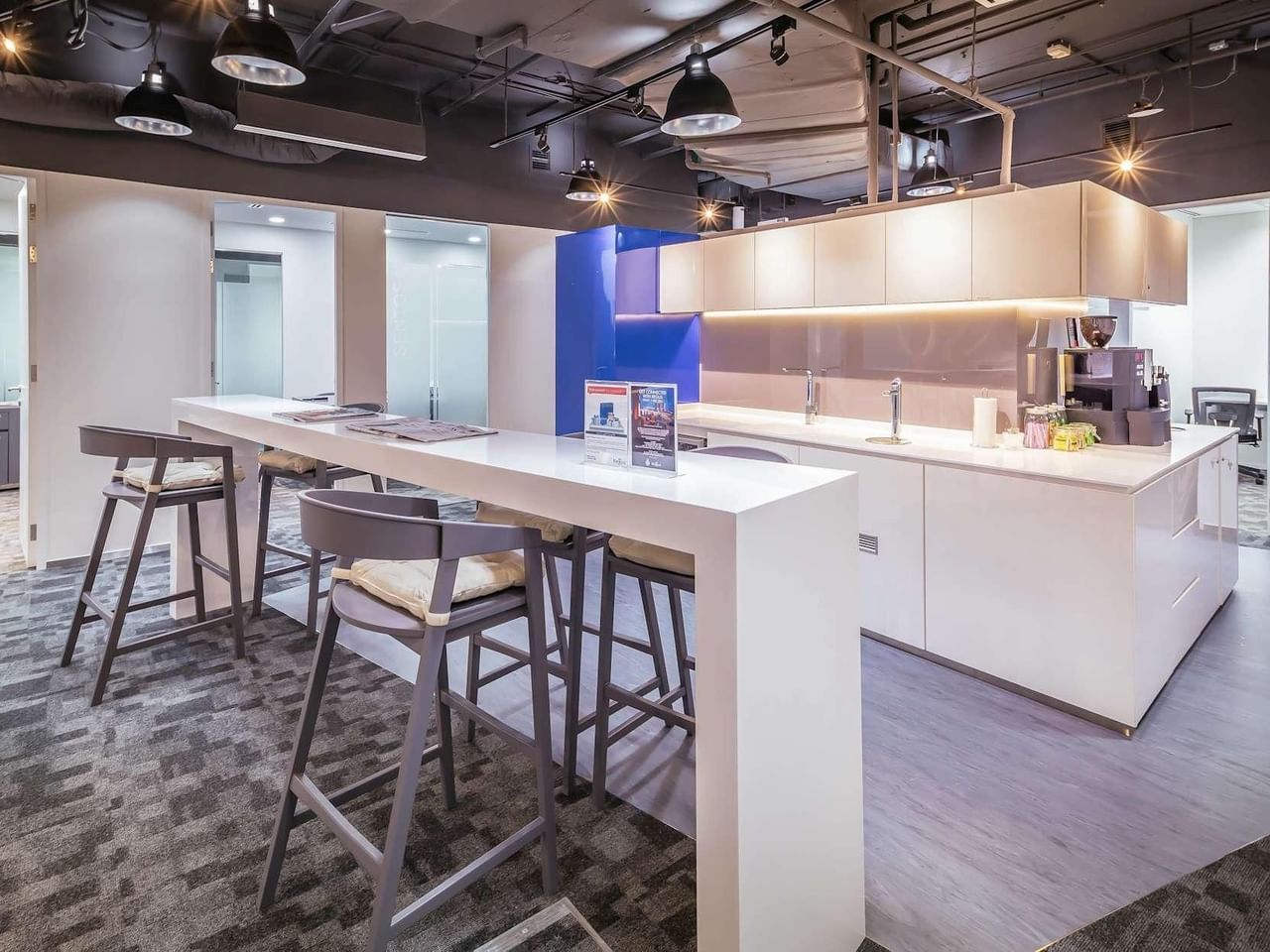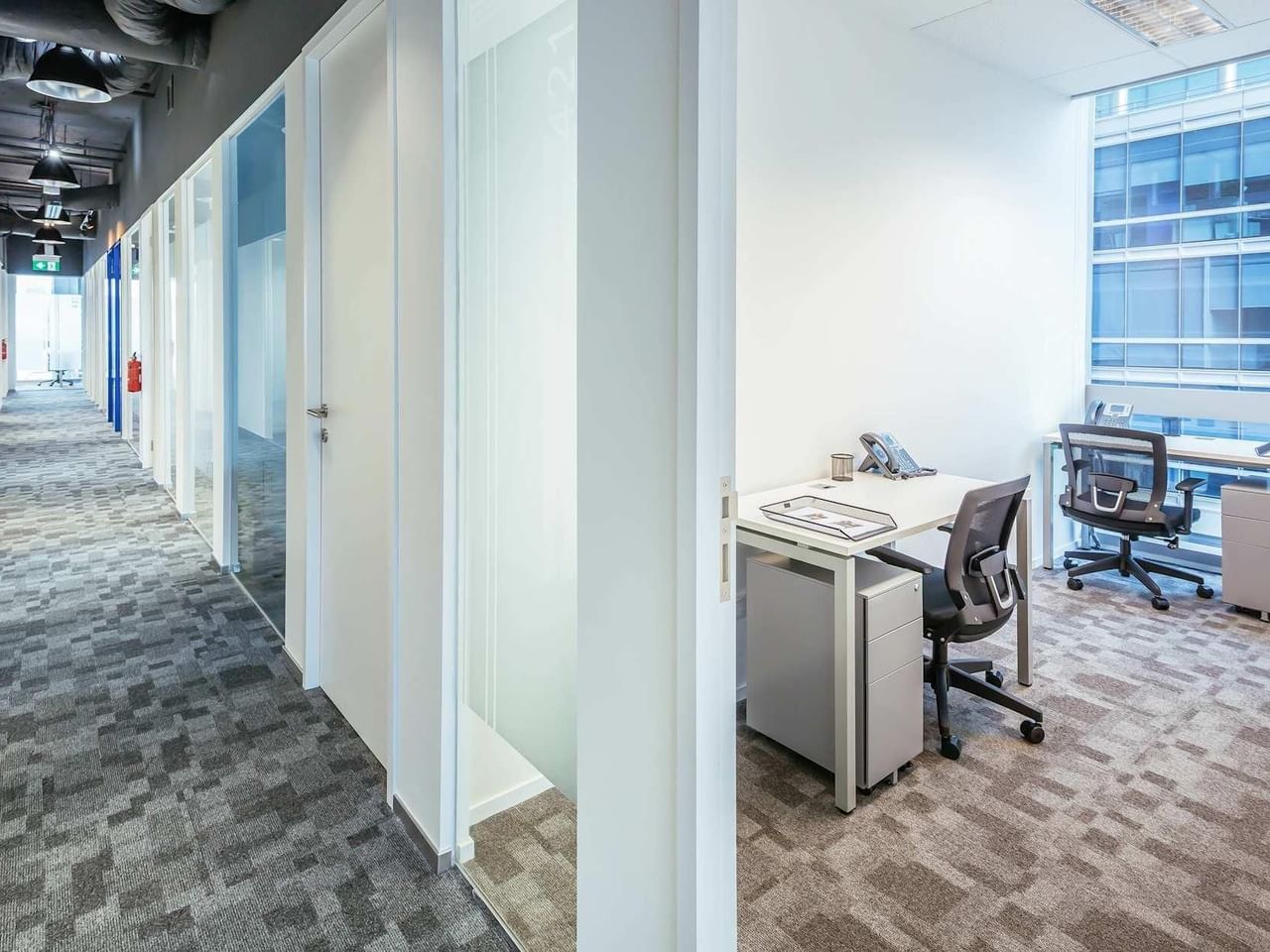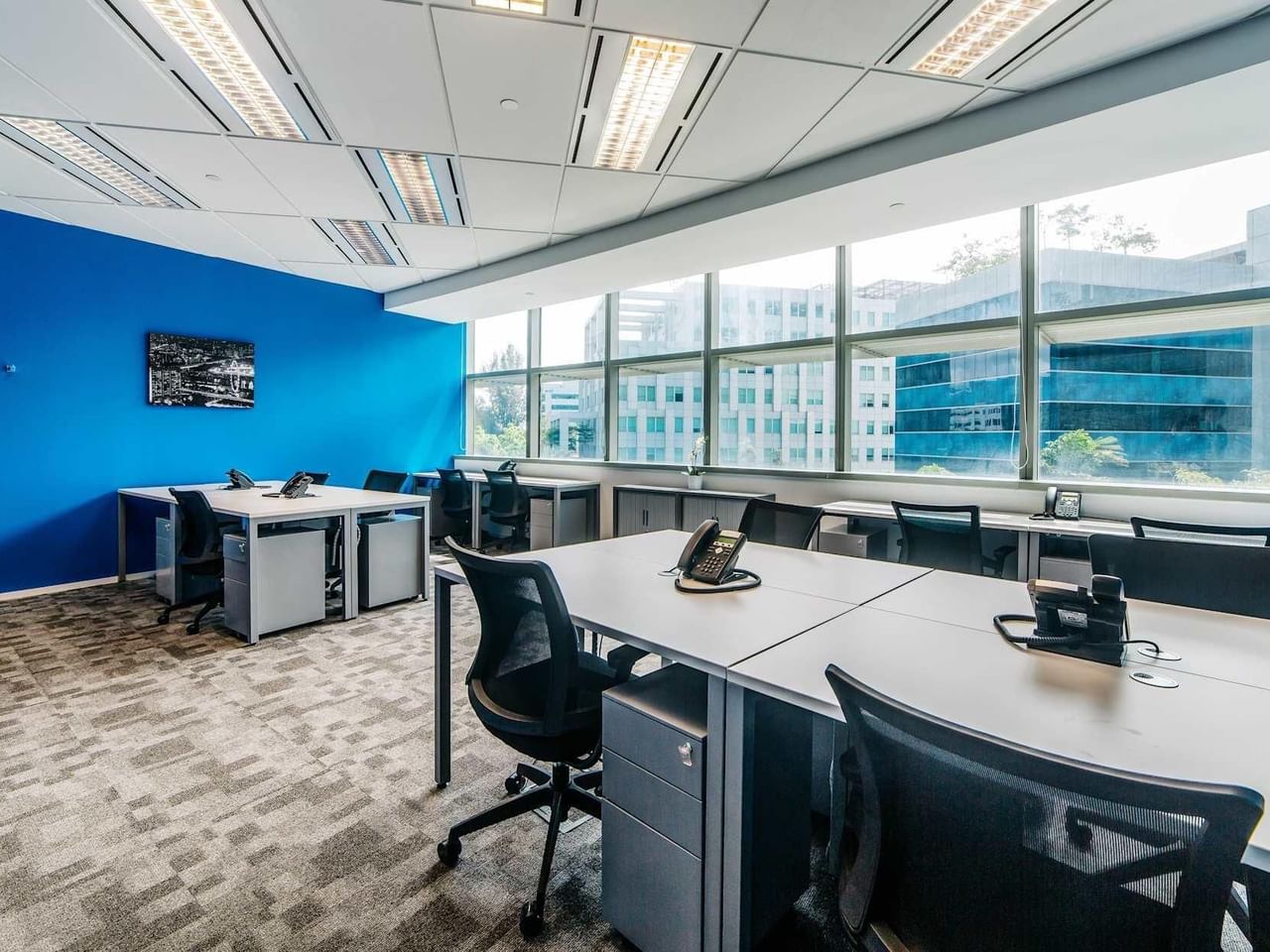 Inspire os seus convidados num espaço de escritório contemporâneo com vistas impressionantes sobre a paisagem circundante.
