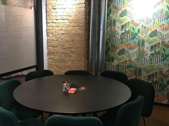 | Salle de réunion | 2-10 personnes | WLAN, écran, tableau blanc | Entretiens d'embauche, réunions d'équipe |